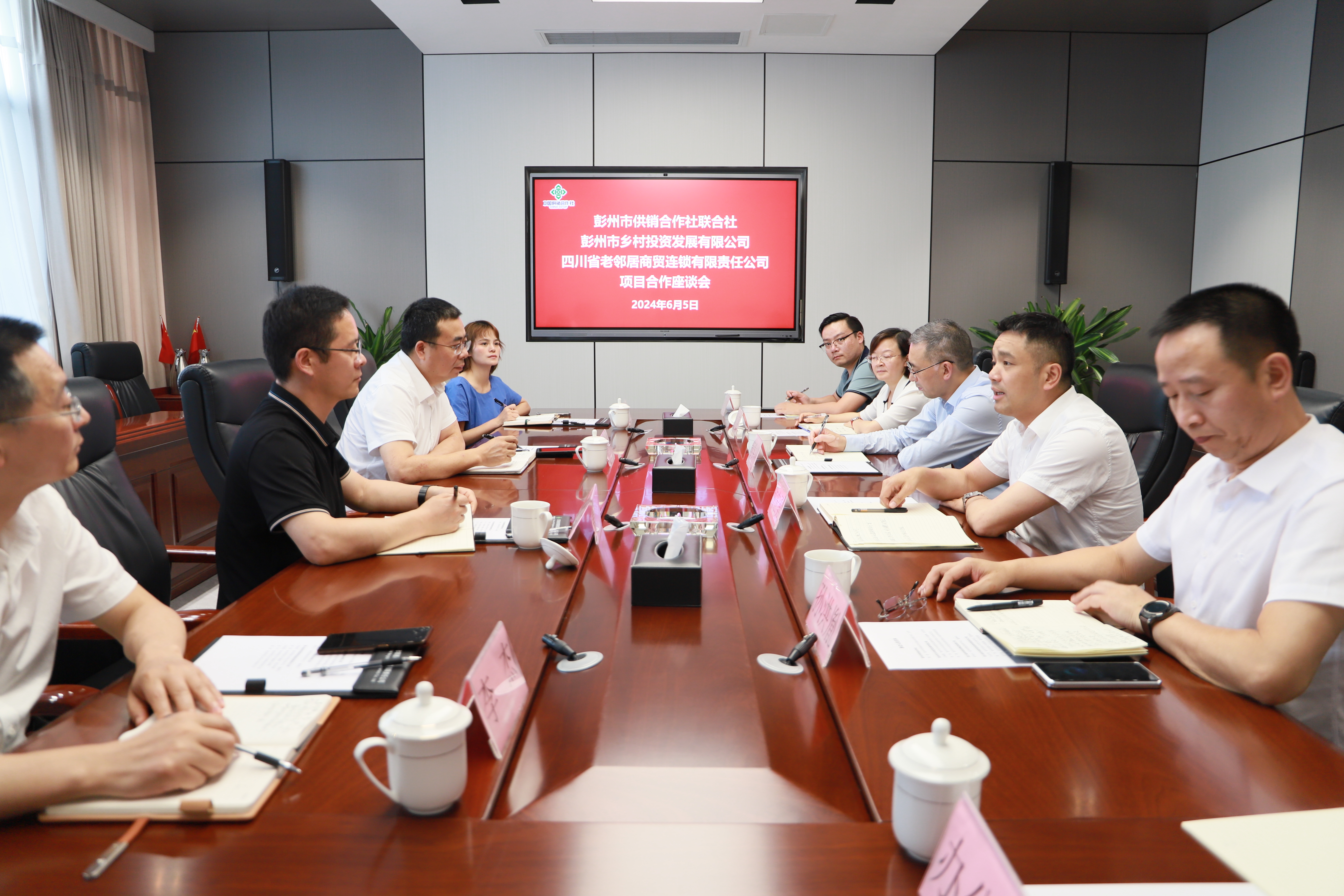 6月5日下午,省老鄰居公司與彭州市供銷社黨組書記、理事會主任黃念,彭州市鄉(xiāng)村投資發(fā)展有限公司董事、總經(jīng)理江林蔚一