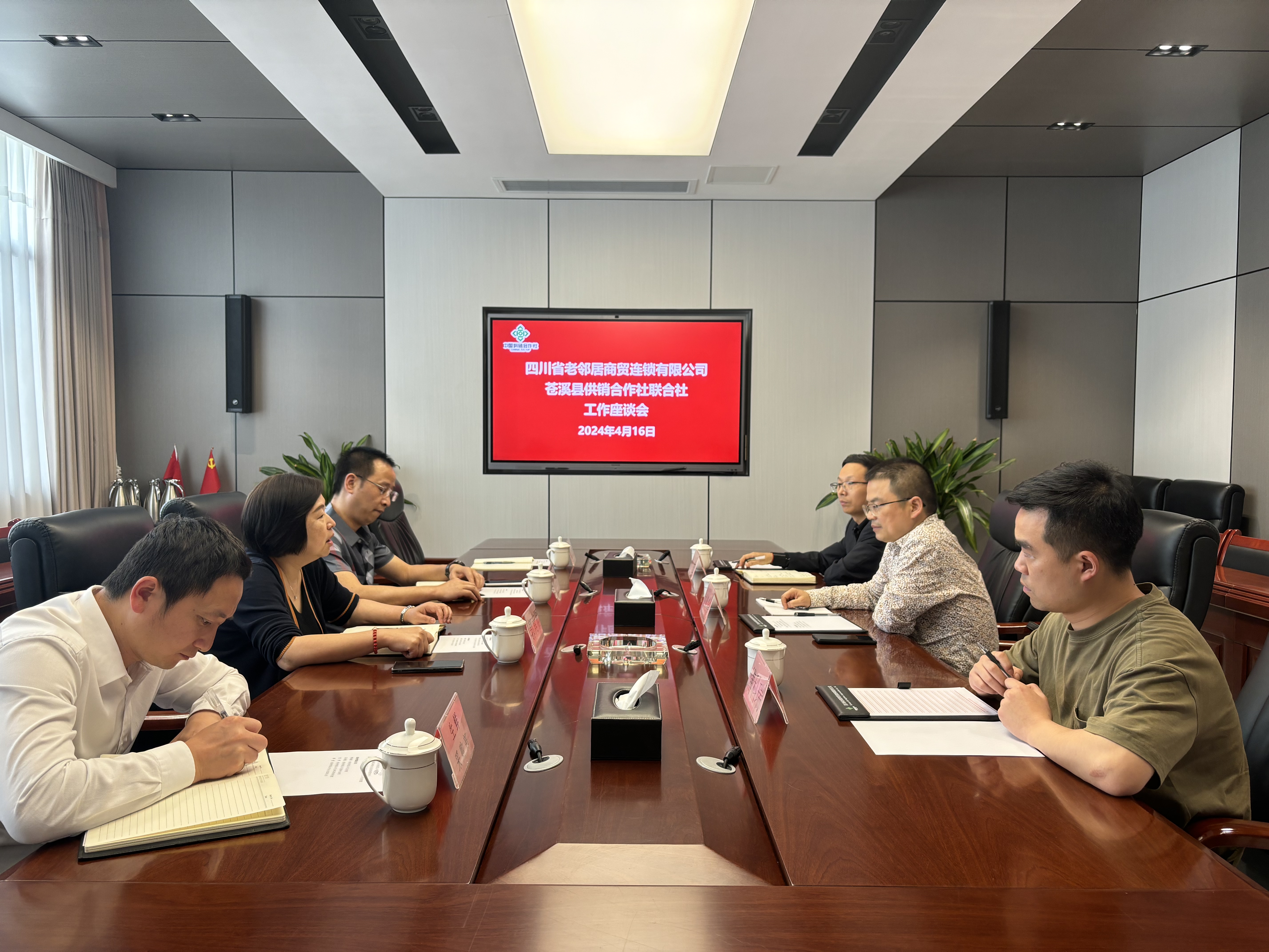 4月15日上午,省老鄰居公司總經(jīng)理郭南雁一行赴廣元市供銷(xiāo)投資集團(tuán)洽談合作業(yè)務(wù),廣元市供銷(xiāo)投資集團(tuán)董事長(zhǎng)鄭勇、利州區(qū)