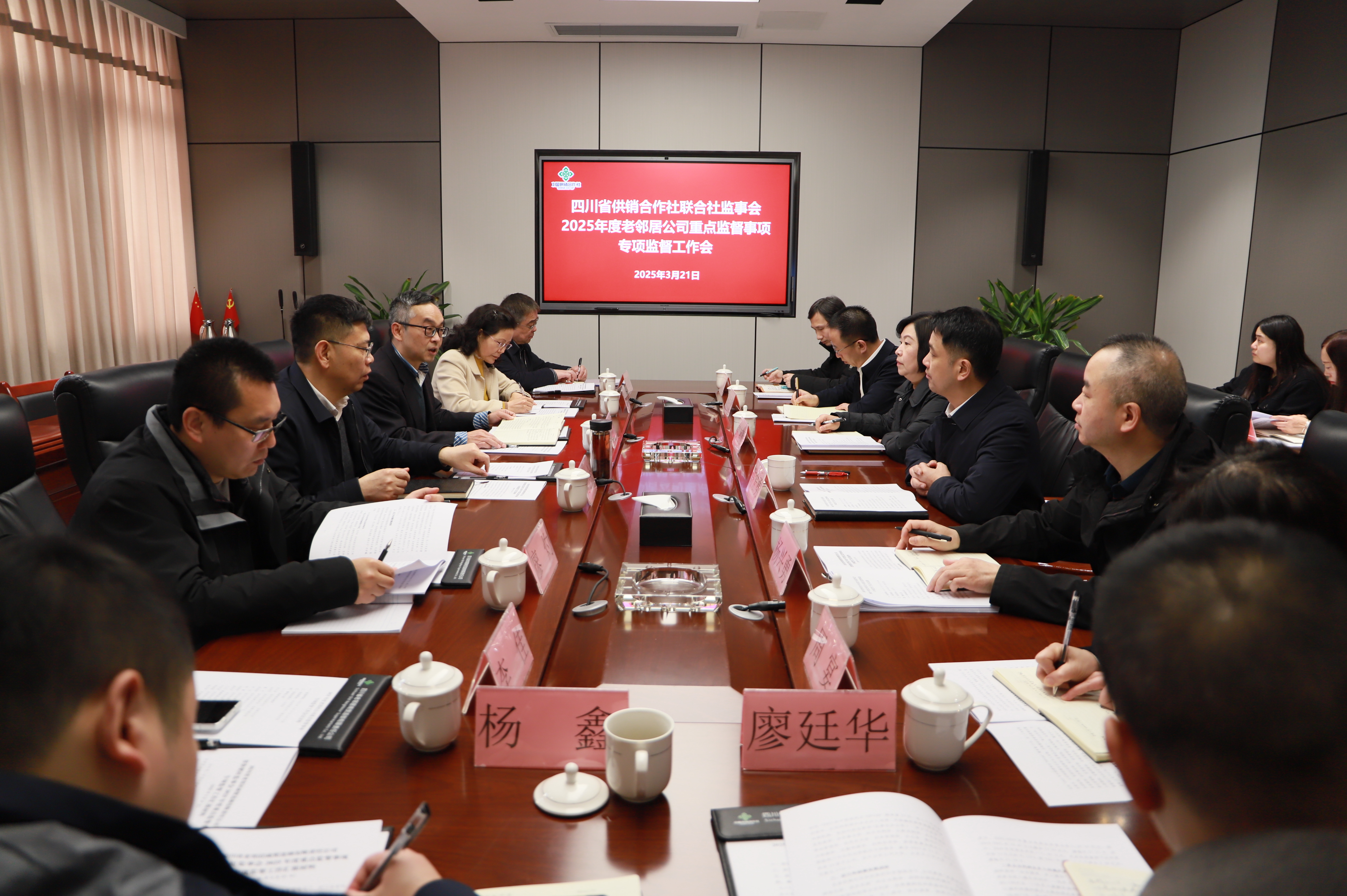 3月21日,省供銷社黨組副書記、監(jiān)事會主任肖小余,黨組成員、監(jiān)事會副主任劉世軍一行到省老鄰居公司開展2025年度